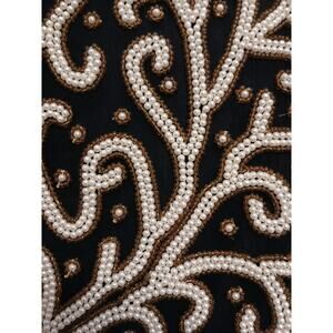 Vintage SILK Jacket Black White Pearls Sz SP Formal Holiday Party Glam Cropped