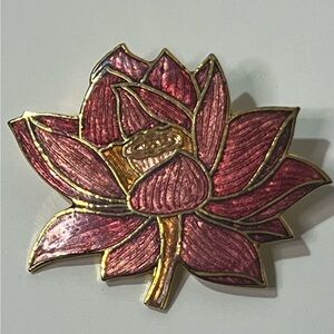 Vintage SITI Cloisonne Style Rose Flower Lapel Pin Brooch Gold Tone