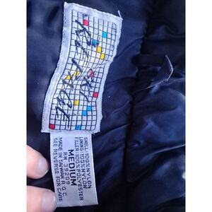 The Vintage SKI REPAGE Size Medium Black Retro Ski Jacket is a stylish and functional piece perfect for skiing enthusiasts. Made with durable nylon outer shell material and cozy polyester lining, this bomber jacket features a solid black color with a retro ski theme. Designed for men, it includes practical features like a full zip and pockets for added convenience on the slopes. Stay warm and stylish while hitting the slopes in this vintage-inspired ski jacket from Ski Repage.