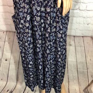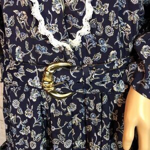 Vintage SL Fashions Blue Floral Belted Dress 1980s Size 18 Fits Much Smaller