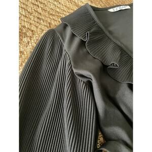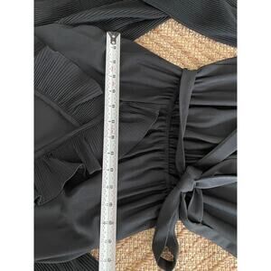 Vintage S.L. Petites Black Sheer Ruffle detailed Dress with belt retro disco