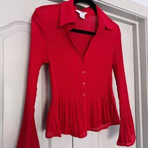 Vintage S.L.B. Sheer Red Pleated Top – Petite Small