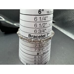Vintage SLC Signed Silver Tone Diamond Heart Link Tennis Bracelet 7.25"