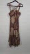 U.S.A. Made Vintage S.L.Fashions Y2K 90's Steampunk Whimsigoth Witchy Fairy Cross Straps Halter Semi-Sheer Crinkle Texture Chocolate Brown STRETCHY Chiffon with Shiny Brown/Ivory/Gray Burnout Crushed Velvet Floral Printed Babydoll Midi Dress Size 12. Phoebe-Buffay-Inspired / Buffy-The-Vampire-Slayer.
