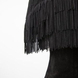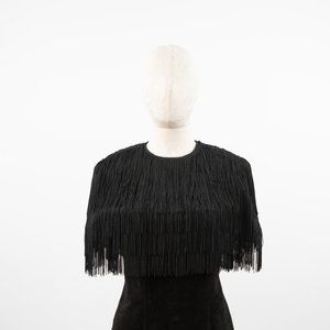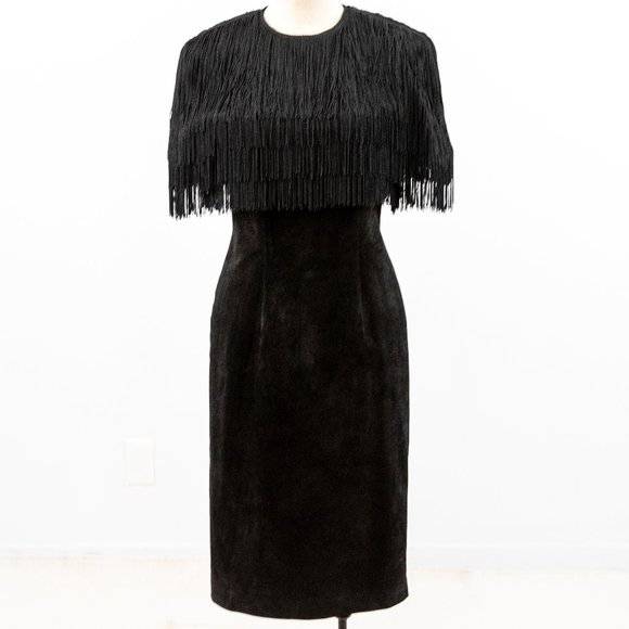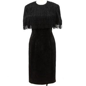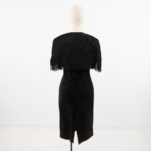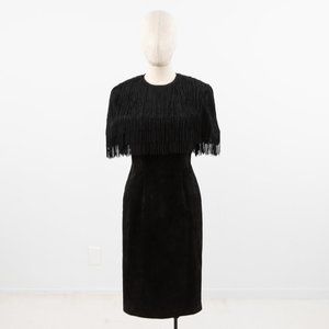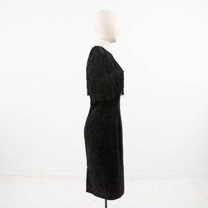 Vintage S/M Fringe Suede Leather Midi Dress Black