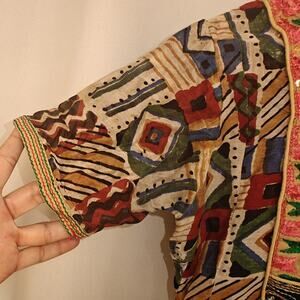 Vintage Boho Ethnic Embroidered Tunic Dress Geometric Tribal Patchwork Festival Hippie size small
