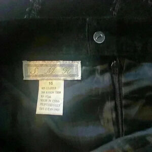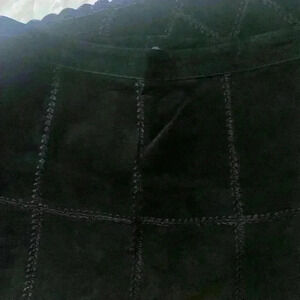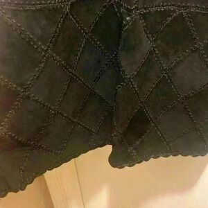 Vintage SMH black suede patchwork maxi skirt. Size 16. In excellent pre loved vintage condition & fully lined. Waist measures 34” & skirt is 30” long.