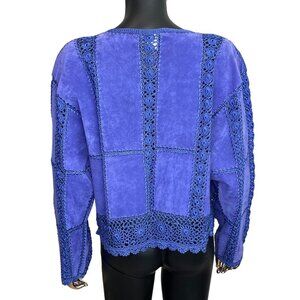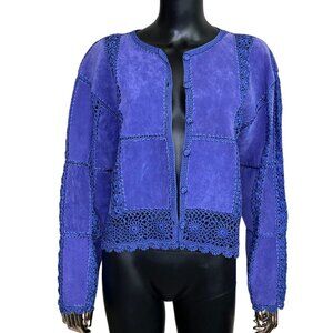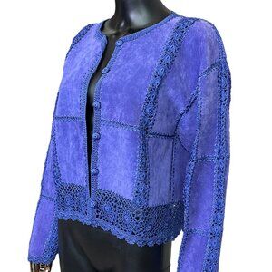 Vintage SMH Boutique Purple Suede & Crochet Leather Jacket Size Large
