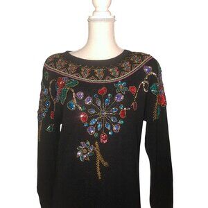 Vintage SML Sport LTD Sz S Women’s '92 Black Sequin Beads Christmas Knit Sweater