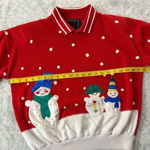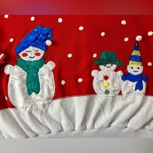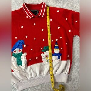 Vintage SML Sport Ugly Christmas Sweatshirt is in good vintage condition with some signs of wear. One of the snowmen’s stitching has come loose and there is a small stain towards the bottom hemline, please review all photos for best description. Normal wash/ fade wear present. This item does not have a size but approximate measurements have been provided although, they are not a guarantee of fit.