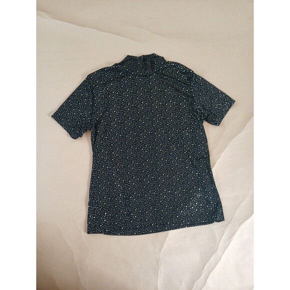Vintage SMU Design Shirt Womens M Mock Neck Black & Gold Short Sleeve