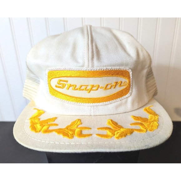 Vintage SNAP-ON 80s USA K-BRAND Black Trucker Hat Cap Snapback SCRAMBLED EGGS. The hat is vintage from a hat collection. The foam backing inside has degraded due to age. Great and rare Snap-On.