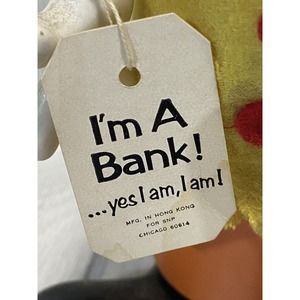 This vintage SNP clown piggy bank is a fun and quirky addition to any collection. With its bowling pin shape and colorful design, it's sure to catch the eye of any collector or enthusiast. Made of durable plastic and originating from Hong Kong, this bank is a unique piece of history that would make a great gift or conversation starter. As a bonus, it also comes with a California Prop 65 Warning for added peace of mind. Don't miss out on this one-of-a-kind item!