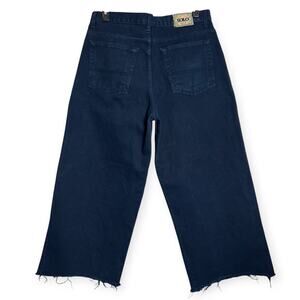 Vintage SOLO SEMORE Wide Leg Jeans MENS 34 x 27 Indigo RAW HEM Cropped Dark Indigo Denim