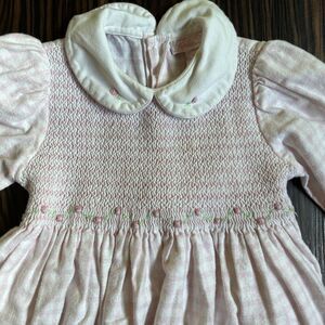 Vintage SOPHIE DESS Girls Smocked Dress Sz 2T Tie Back Pink Pattern Long Sleeve