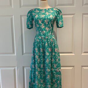 Vintage SS turquoise and pink Laura Ashley cotton dress US 10