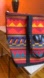 90 Rare vintage SSI tote bag featuring a bold Southwestern / Aztec-style woven pattern in vibrant red, yellow, orange, purple, and teal tones. Black nylon straps and base with oval leather-look patch logo stamped NYNEX (historic telecom company, making this a unique piece of corporate & vintage ephemera).