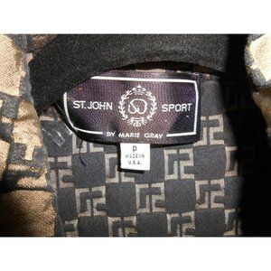 Vintage ST. JOHN SPORT By Marie Gray Leather Trim Jacket Bronze Black Monogram