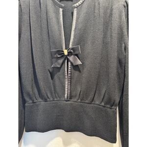 Vintage ST. JOHN Santana Knit Evening Top Women’s Black Satin Bow Retro Bling