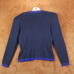 Vintage ST JOHN Sweater Womens Size 2 Gray Pullover Peplum Flare Button Shoulder