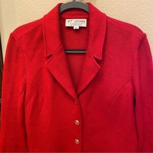 Vintage ST. JOHN Women Red Knit Buttoned Jacket Size 8-Made in USA-Has Flaws