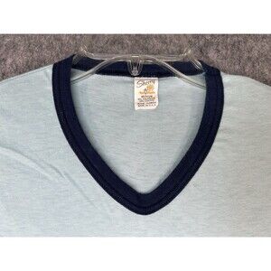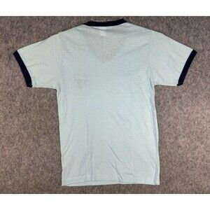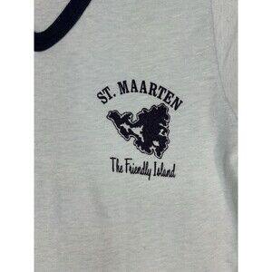 Vintage ST MAARTEN T-Shirt Medium Blue Ringer Retro 80s Single Stitch Black