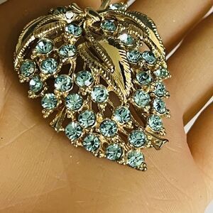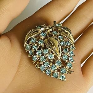 Vintage STAR Signed Blue Rhinestone Austria Brooch Filigree Sparkly PRETTY