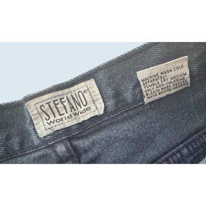 Great pair of vintage jeans by Stefano. Circa 80s / 90s. High waisted. Pleated details. Side slant pockets. Zip / button closure. 100% cotton. Tag is a size 6 -listed as a size 24 based on measurements (see size diagram in photo section). Pre-owned and gently worn in really nice condition!