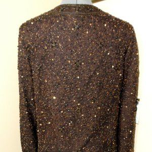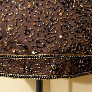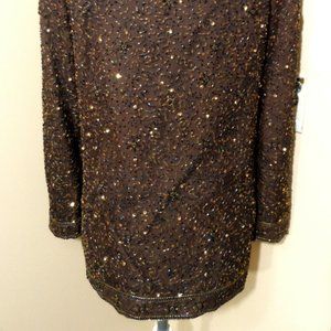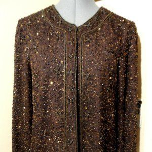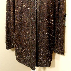 Vintage STENAY 100% Silk ALL Beaded Formal Jacket S Brown Hook front Overcoat LS