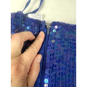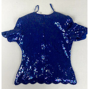 Vintage STENAY Silk BEADED SEQUIN TOP Blue Short Sleeve Ladies 8 Party Wedding