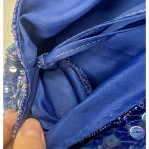 Vintage STENAY Silk BEADED SEQUIN TOP Blue long Sleeve Ladies 8 Party Wedding