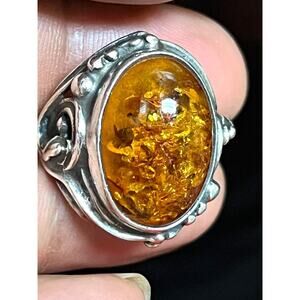 Vintage STERLING SILVER Baltic AMBER Ring 8