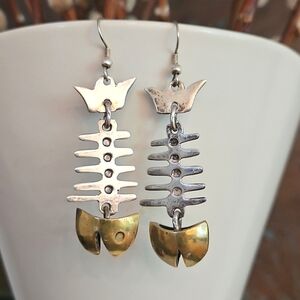 Statement vintage sterling silver and brass fishbone earrings perfect for adding a unique touch to any outfit.