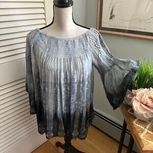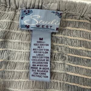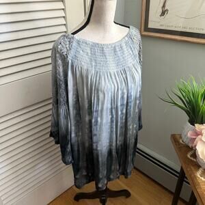 Vintage STUDIO WEST Top Womens Medium Gray Smocked Tunic Retro Y2K Boho Grunge