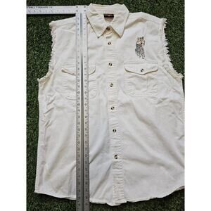 Vintage STURGIS MOTORCYCLE MENS XL SLEEVELESS BUTTON UP Canvas SHIRT VEST Eagle