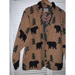 Vintage SUGAR STREET WEAVERS Camping Lodge Bears Button Jacket One Size