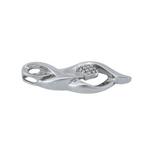 This elegant vintage pendant features a fluid twisted design with a central diamond accent, adding a touch of sparkle. Crafted in sterling silver, it measures 2.8cm in length, making it a versatile accessory for both casual and formal occasions. The timeless piece would complement any collection with its graceful curves and delicate gemstone detailing.