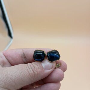 Vintage SWANK Cufflinks Blue Glass Gold Tone .5"
