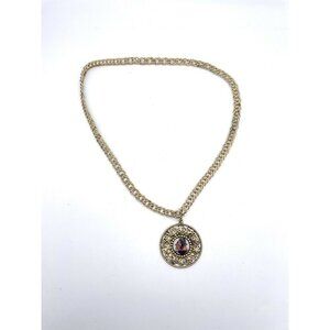 Vintage SWANK Medallion purple faux Gem Gold toned 30"