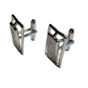 Vintage SWANK Mid Century Cuff Links Silvertone Brushed Etched Dimensional Chic