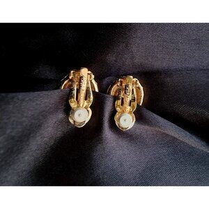 These vintage clip-on earrings by Swarovski are a classic! Dangle a little sparkle with these teardrop-shaped crystals. The bright white stones shine beautifully and are set in a fancy gold-colored metal. Easy to clip on, these earrings are perfect for anyone who loves a touch of timeless elegance. They're a true vintage find!
