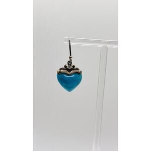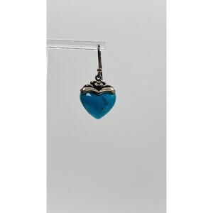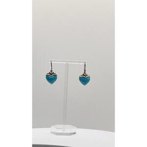 Vintage SX Sterling Silver 925 Dangle Blue Faux Turquoise Love Heart Earrings. Cleaning recommended before use. Earrings have normal to silver patina due to oxidation. Beautiful earrings to add to your jewelry collection. (L6B)