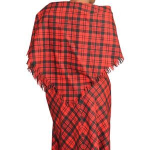 Vintage Saba Tartan Dress Red Matching Shawl Wool Plaid 70s Maxi Set Size Medium