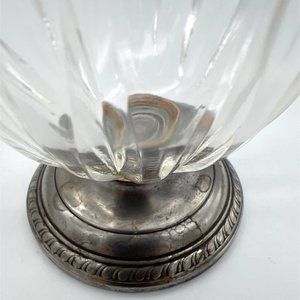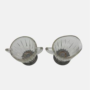 Vintage Saben Glass Creamer and Sugar Bowl Set with Silverplate Bases 3.5"