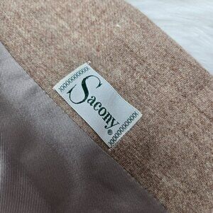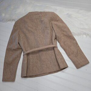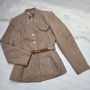 Vintage Sacony Belted Blazer Jacket Women's Size 12 Tan Wool Pockets Lined