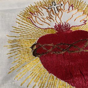 Vintage Sacred Heart IHS Embroidered Linen Piece