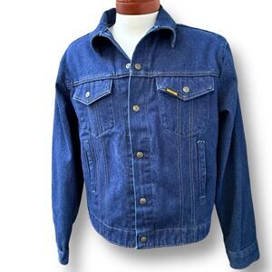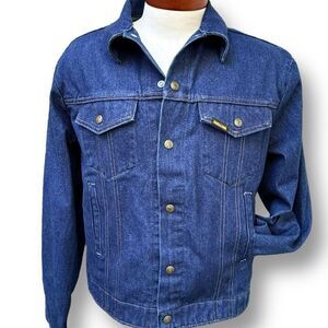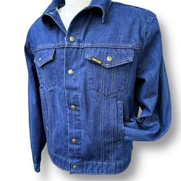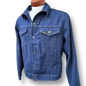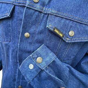 Tags: retro vintage cowboy country western trucker jean jacket denim 100% cotton made in USA