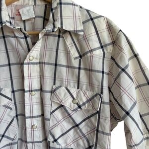Classic vintage Saddle King Westerns plaid pearl snap shirt with dual chest pockets, pointed yoke, and authentic cowboy style.