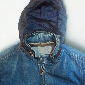 Vintage Saddlery Denim Jacket, 2X, Made in USA, Hooded Moto Style