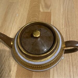 Beautiful brown teapot with gold accents. Perfect for tea lovers.
